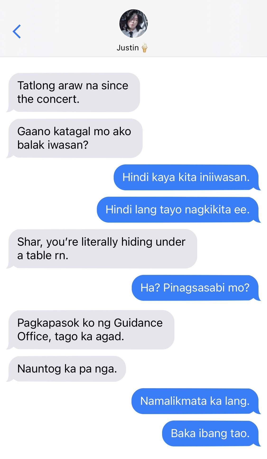 Maraming tao ang nasasaktan lang at naiinis sa mga farewell messages ng mga ex nila pero hindi nila iniintindi at hindi nila ginagamit. Kaya pala bukambibig mo yung TAO KA LANG eh panay PAKITANG TAO KA LANG naman pala. At saka ikinuwento ng aktres na kaya pala may phobia siya sa maraming tao Sabi kasi sa akin ng mama ko nung maliit ako iba ang mukha ko.